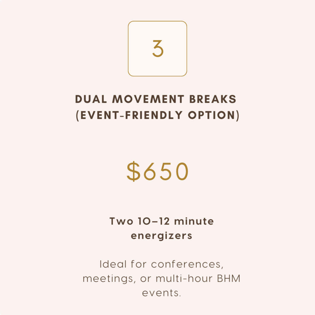 Bring your workplace a meaningful, uplifting Black History Month program rooted in culture, movement, and community connection.Availability is limited, and sessions are confirmed on a first-come basis.